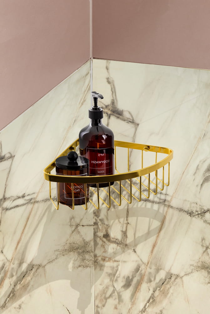 Przedmiotem sprzedaży jest industrilana półka druciana, wykonana z dobrej jakości drutu stalowego w kolorze złota. Przeznaczona do zawieszenia na ścianie za pomocą wkrętów, które producent świetnie wykonał i zamaskował (jak na 2 foto). Przedmiotowa półka znalazła uznanie wśród osób chcących efektownie wykorzystać miejsce w swojej łazience. Półka pomieści wszystkie niezbędne drobne kosmetyki potrzebne w kabinie prysznicowej, a ponadto doda uroku i sprawi, że łazienka stanie się gustowna i elegancka. Naszą półkę polubili również majsterkowicze na różne drobiazgi do garażu, warsztatu czy spiżarni. Wymiary 29x22x8cm.
