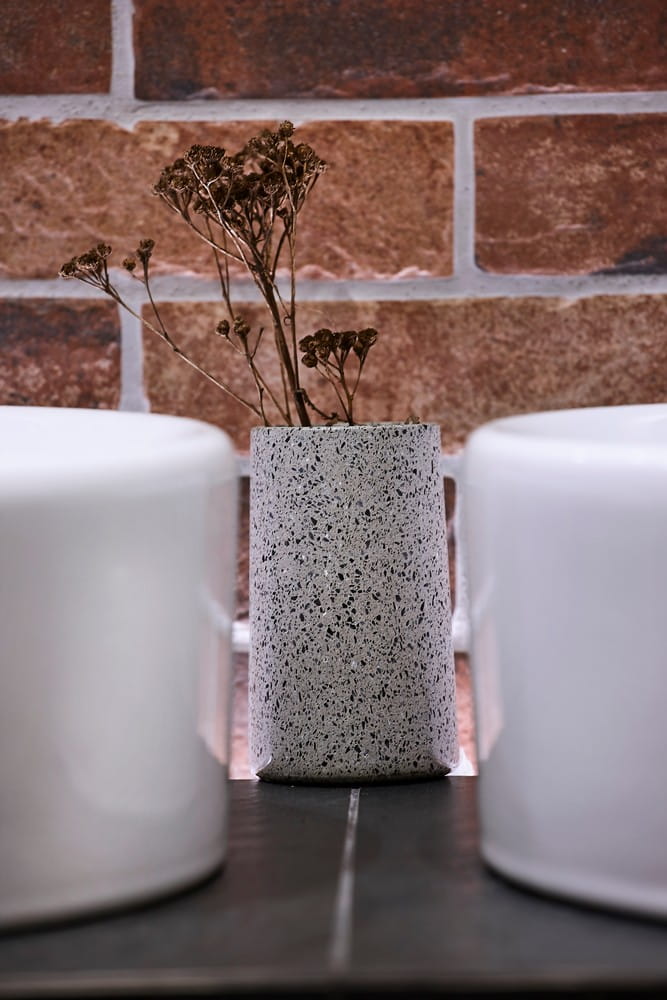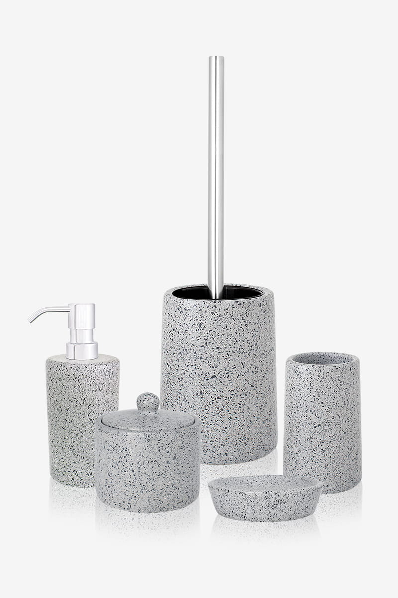 Przedmiotem sprzedaży jest komplet wykonany z terrazzo (lastryko) - materiału, który stał się wnętrzarskim hitem. Rosnąca popularność lastryko wynika nie tylko z mody na industrialne wnętrza, ale również z dużej różnorodności wzornictwa i kolorystyki w jakiej występuje. Stanowi atrakcyjny oraz ponadczasowy element wyposażenia stylowej łazienki, a także doskonale komponuje się z innymi akcesoriami z kolekcji Q-BATH. Do materiału bazowego w odcieniach szarości zostały dodane marmurowe kamyczki o czarnych tonach. Dozownik posiada pompkę ze stali nierdzewnej, charakteryzującą się najwyższą wytrzymałością i perfekcyjnym stanem przez długie lata. Produkt ten należy do linii Perfect Minimalism, która zachwyca pięknem kamieni w niebanalnym, architektonicznym wydaniu. Świetne wykonanie sprawi że Twoja łazienka stanie się elegancka i niepowtarzalna.