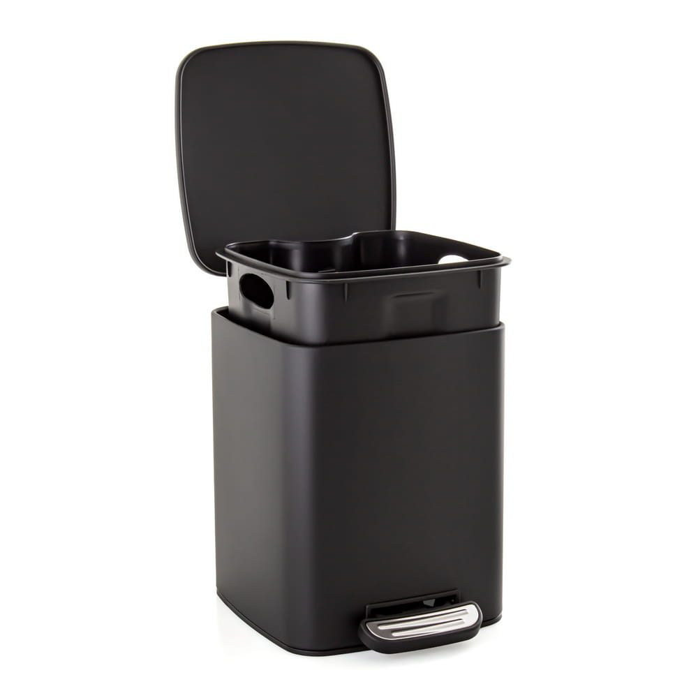 Przedmiotem sprzedaży jest kosz na śmieci o pojemności 6 litrów. Kosz wykonany ze stali nierdzewnej w kolorze czarnym i pojemności 6 litrów. Posiada klapę SOFT CLOSE czyli klapę wolnoopadającą fajną i cichą funkcję. Wnętrze kosza wyposażone w ergonomiczny dodatkowy pojemnik z tworzywa z uchwytami w celu łatwego wypróżniania oraz zakładania worków bez ich widoczności po zamknięciu kosza. Kosz bardzo ładny, sprawi że Twoja łazienka stanie się elegancka i niepowtarzalna. Nadaje się świetnie na odpadki w łazience, gabinecie kosmetycznym czy lekarskim lub jako kosz biurowy.