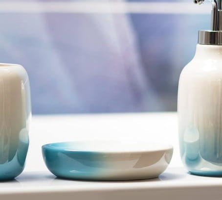 Przedmiotem sprzedaży jest komplet łazienkowy o nazwie Oland. Wykonany z perłowej ceramiki, która robi piorunujące wrażenie. Z tymi przedmiotami łazienka staje się elegancka, nowoczesna i niepowtarzalna. Zestaw składa się z dozownika na mydło w płynie, mydelniczki i kubeczka.