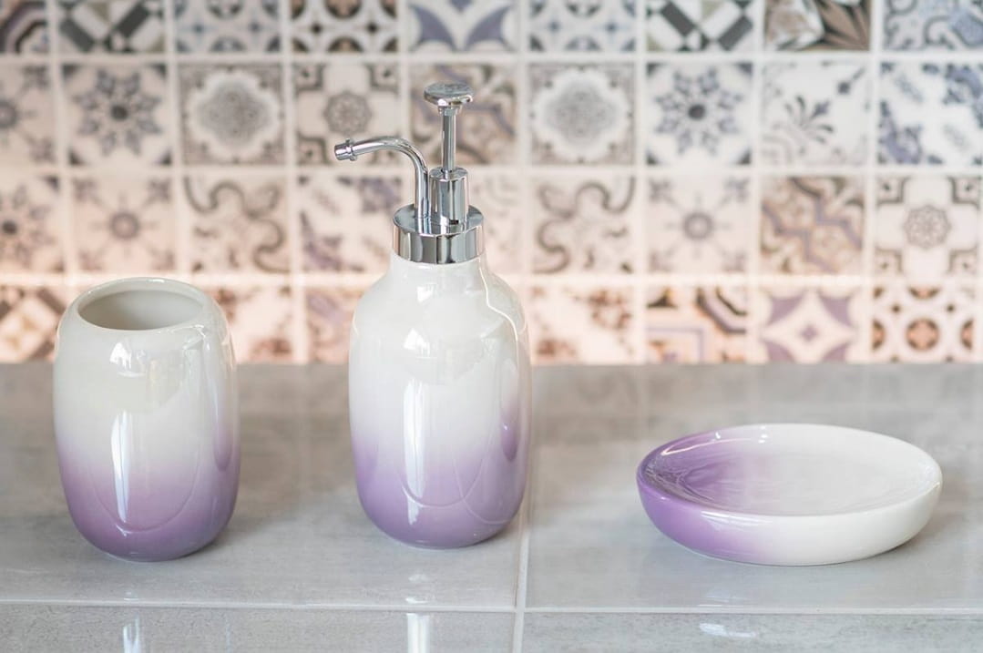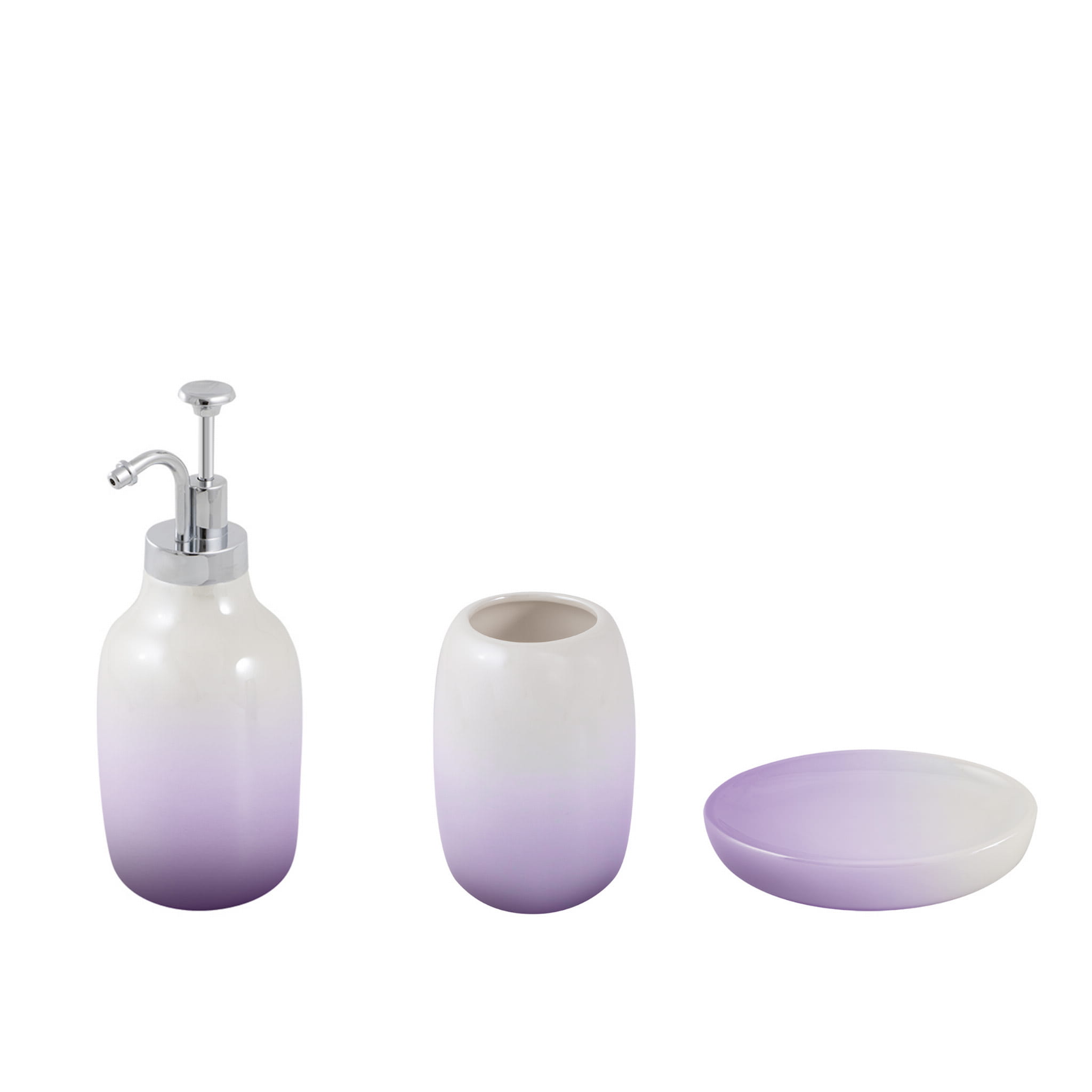 Przedmiotem sprzedaży jest komplet łazienkowy o nazwie Prem. Wykonany z perłowej ceramiki, która robi piorunujące wrażenie. Z tymi przedmiotami łazienka staje się elegancka, nowoczesna i niepowtarzalna. Zestaw składa się z dozownika na mydło w płynie, mydelniczki i kubeczka.