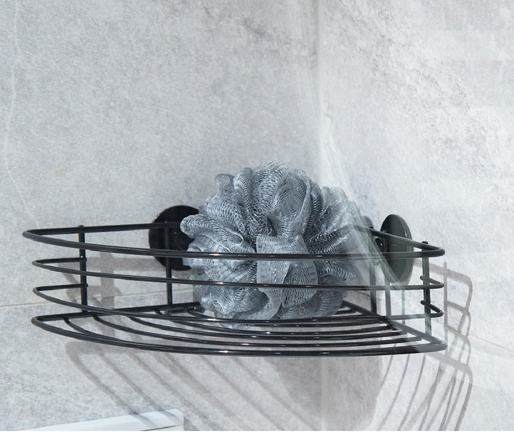 Przedmiotem sprzedaży jest półka łazienkowa druciana rogowa na przyssawki. Posiada jeden poziom na którym pomieścimy podstawowe drobiazgi w łazience. Półkę montuje się na znakomicie trzymające przyssawki wykonane w podobnej technologii jak w nawigacjach samochodowych. Przykładamy do gładkiej kafelki, szyby lub lustra i dociskamy uchwytem na środku. Jest to świetny produkt dla osób, które nie chcą niszczyć swoich nowych kafelek lub ściany wiertarką. Osoby, które nie mają gładkich kafelek, szyby lub lustra zapraszamy do działu akcesoriów łazienkowych przyklejanych mocną taśmą 3M. Wymiary boki 25 x wysokość 12,5cm.