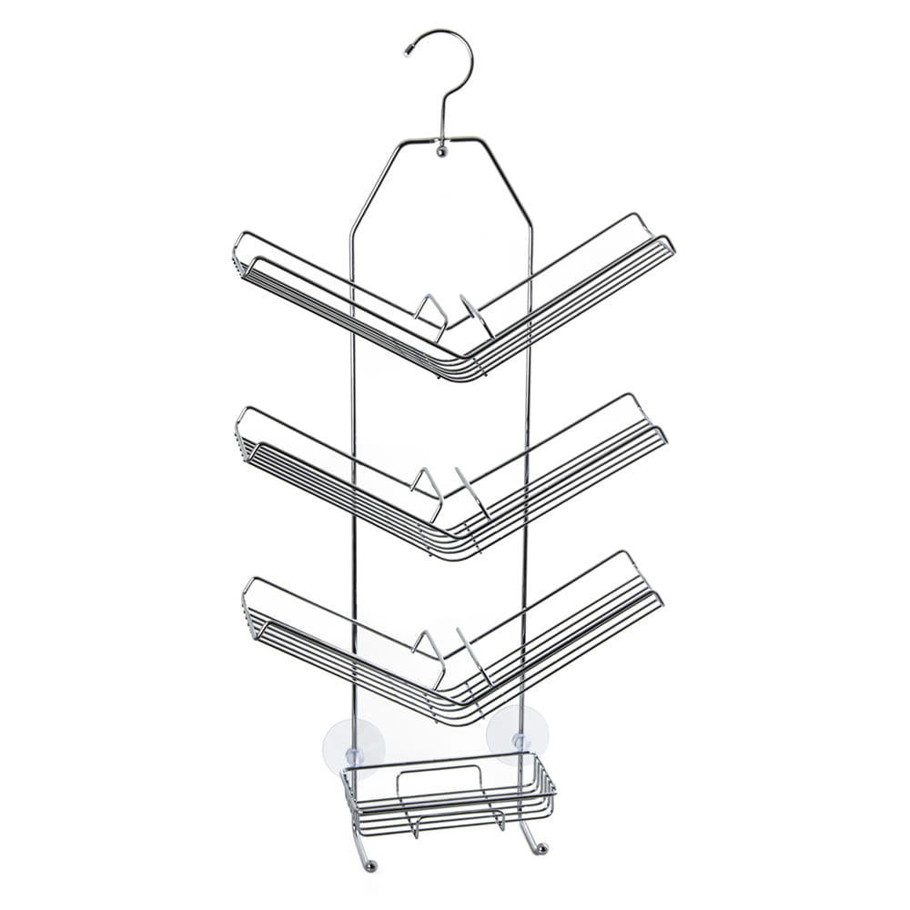 Przedmiotem sprzedaży jest zgrabna rogowa półka druciana trzykondygnacyjna, wykonana z dobrej jakości drutu stalowego chromowanego. Trzypiętrowa przeznaczona do montażu w rogu ściany, z trzema półkami i dwoma wieszakami u dołu na których można powiesić ręczniki, ścierki, gąbki lub myjki. Przedmiotowa półka znalazła uznanie wśród osób chcących efektownie wykorzystać miejsce w swojej łazience. Półka pomieści drobne kosmetyki potrzebne w łazience na trzech poziomach, a ponadto doda uroku i sprawi, że łazienka stanie się gustowna i elegancka. Wysokość 43,5 x 22 x 14,5cm.