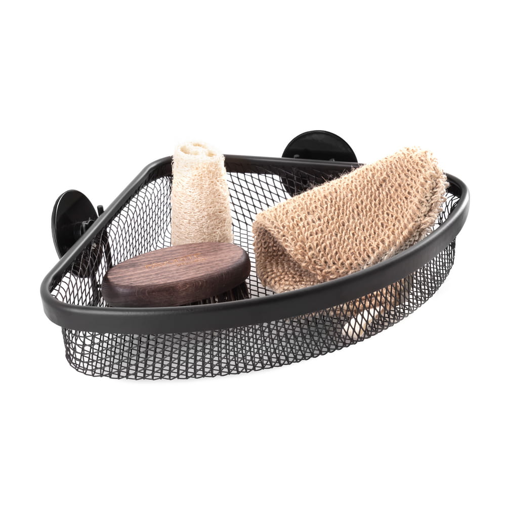 Przedmiotem sprzedaży jest półka łazienkowa druciana rogowa na przyssawki. Posiada jeden poziom na którym pomieścimy podstawowe drobiazgi w łazience. Półkę montuje się na znakomicie trzymające przyssawki wykonane w podobnej technologii jak w nawigacjach samochodowych. Przykładamy do gładkiej kafelki, szyby lub lustra i dociskamy uchwytem na środku. Jest to świetny produkt dla osób, które nie chcą niszczyć swoich nowych kafelek lub ściany wiertarką. Osoby, które nie mają gładkich kafelek, szyby lub lustra zapraszamy do działu akcesoriów łazienkowych przyklejanych mocną taśmą 3M. Wymiary boki 25 x wysokość 12,5cm.