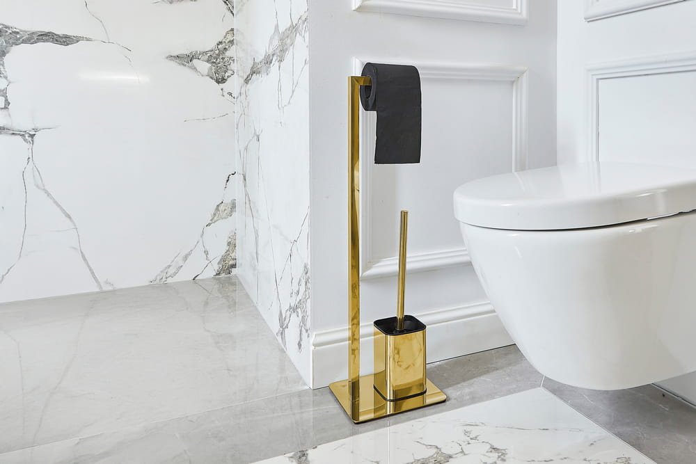 Stojak łazienkowy na papier ze szczotką do WC złoty 1978