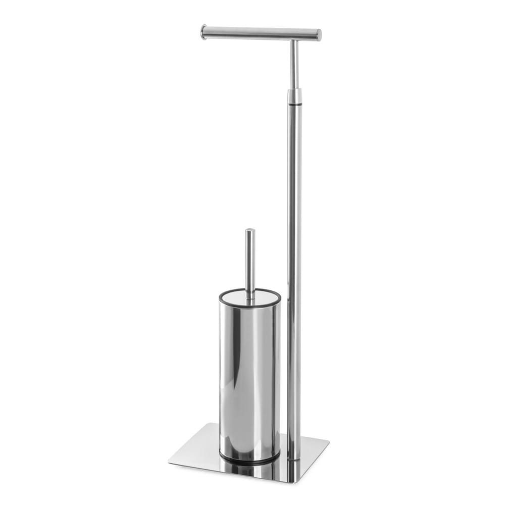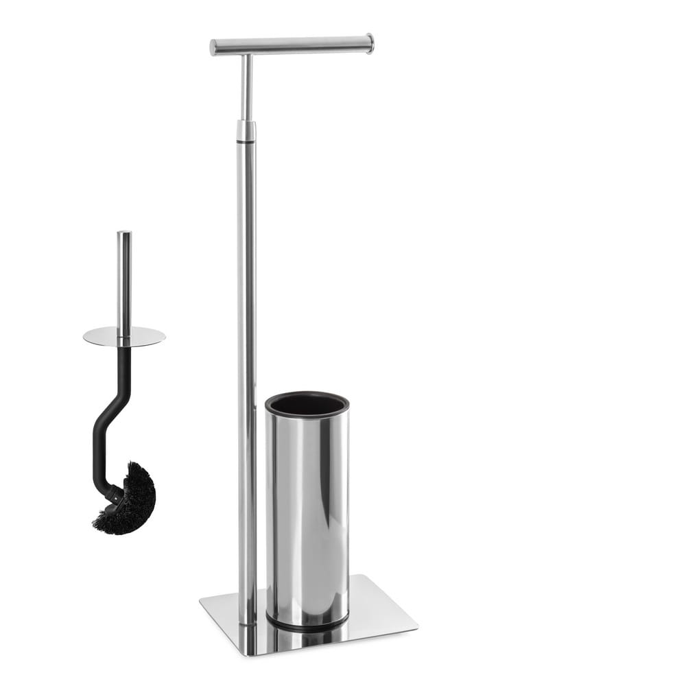 Przedmiotem sprzedaży jest elegancki stojak na papier toaletowy i szczotkę WC wykonany ze stali chromowanej o wysokim, srebrnym połysku. Nasz stojak to elegancki i funkcjonalny element wyposażenia łazienki posiada miejsce na papier toaletowy, a na jego podstawie znajduje się pojemnik na szczotkę WC. Szczotka jest wyposażona w estetyczną pokrywę, która skutecznie ukrywa zawartość pojemnika, dbając o higienę i estetykę. Hitem jest specjalnie wyprofilowana rączka szczotki, która zapewnia wygodne użytkowanie i dopasowanie do kształtu muszli. Część czyszcząca w kształcie litery C pozwala na dotarcie w miejsca gdzie inne szczotki nie docierają, zapewniając precyzyjne sprzątanie. Wysokość 72cm.