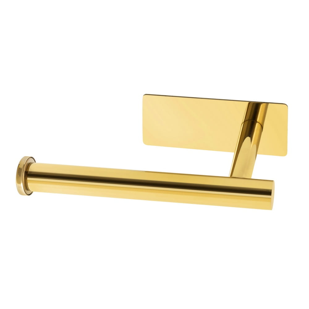Przedmiotem sprzedaży jest samoprzylepny uchwyt na papier toaletowy. Uchwyt wykonany ze stali w kolorze złota przeznaczony do powieszenia na każdej dającej się przykleić powierzchni za pomocą super taśmy 3M (są to takie taśmy jak reklamują w TV typu 3M, Tesla, produkt dla osób które nie chcą wiercić w kafelkach). Wymiary uchwytu 17 x 8cm.