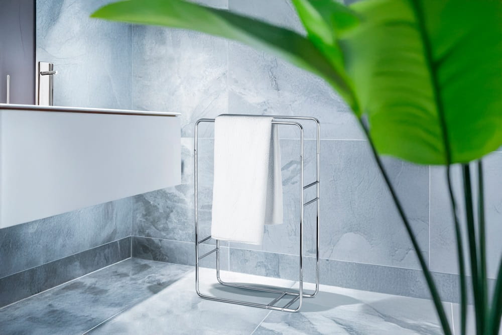 Przedmiotem sprzedaży jest wieszak do łazienki stojący. Wykonany ze stali chromowanej. Jego największa zaleta funkcjonalność i nieduża głębokość, które pozwolą zmieścić się w mniejszych łazienkach. Wymiary wieszaka 48,5x15,5x77,5cm.