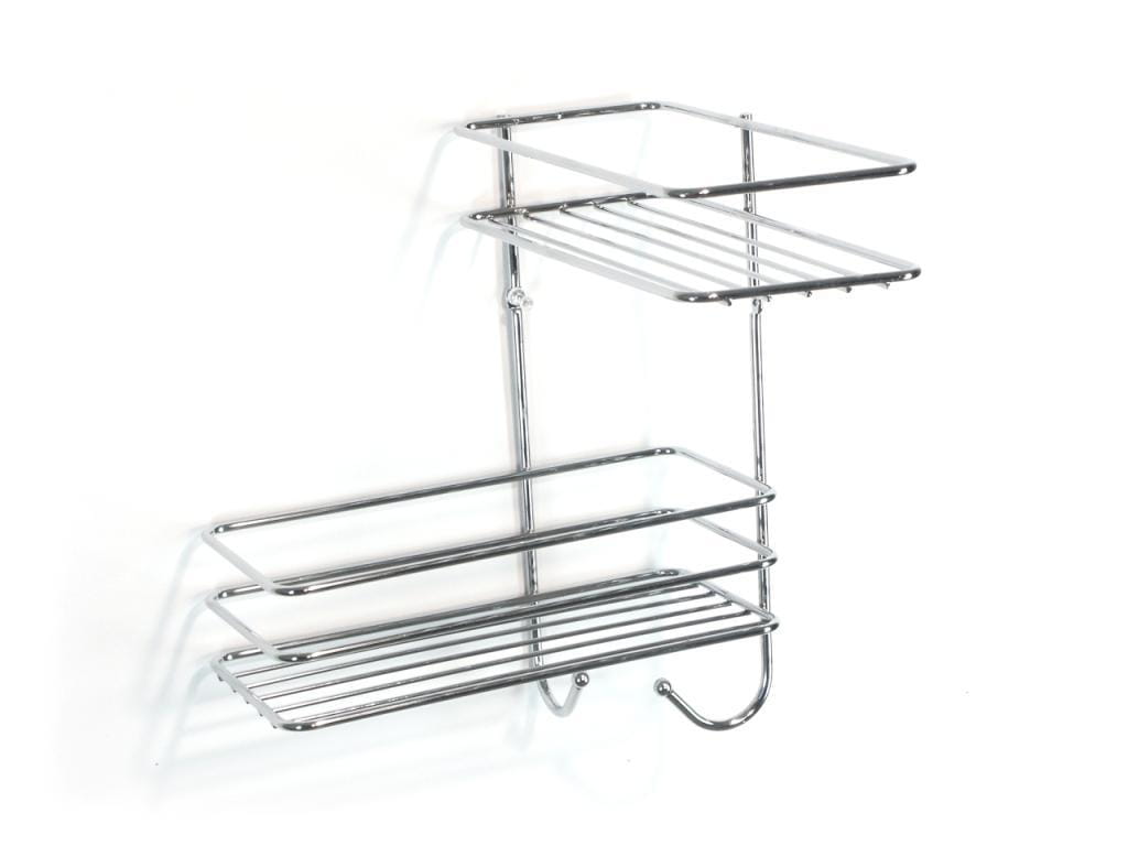 Przedmiotem sprzedaży jest zgrabna rogowa półka druciana, wykonana z dobrej jakości drutu stalowego chromowanego. Dwupiętrowa przeznaczona do montażu w rogu ściany, z dwoma pólkami i dwoma wieszakami u dołu na których można powiesić ręczniki, ścierki, gąbki lub myjki. Przedmiotowa półka znalazła uznanie wśród osób chcących efektownie wykorzystać miejsce w swojej łazience. Półka pomieści drobne kosmetyki potrzebne w łazience, a ponadto doda uroku i sprawi, że łazienka stanie się gustowna i elegancka. Wysokość 31 x 20 x 15,7cm.