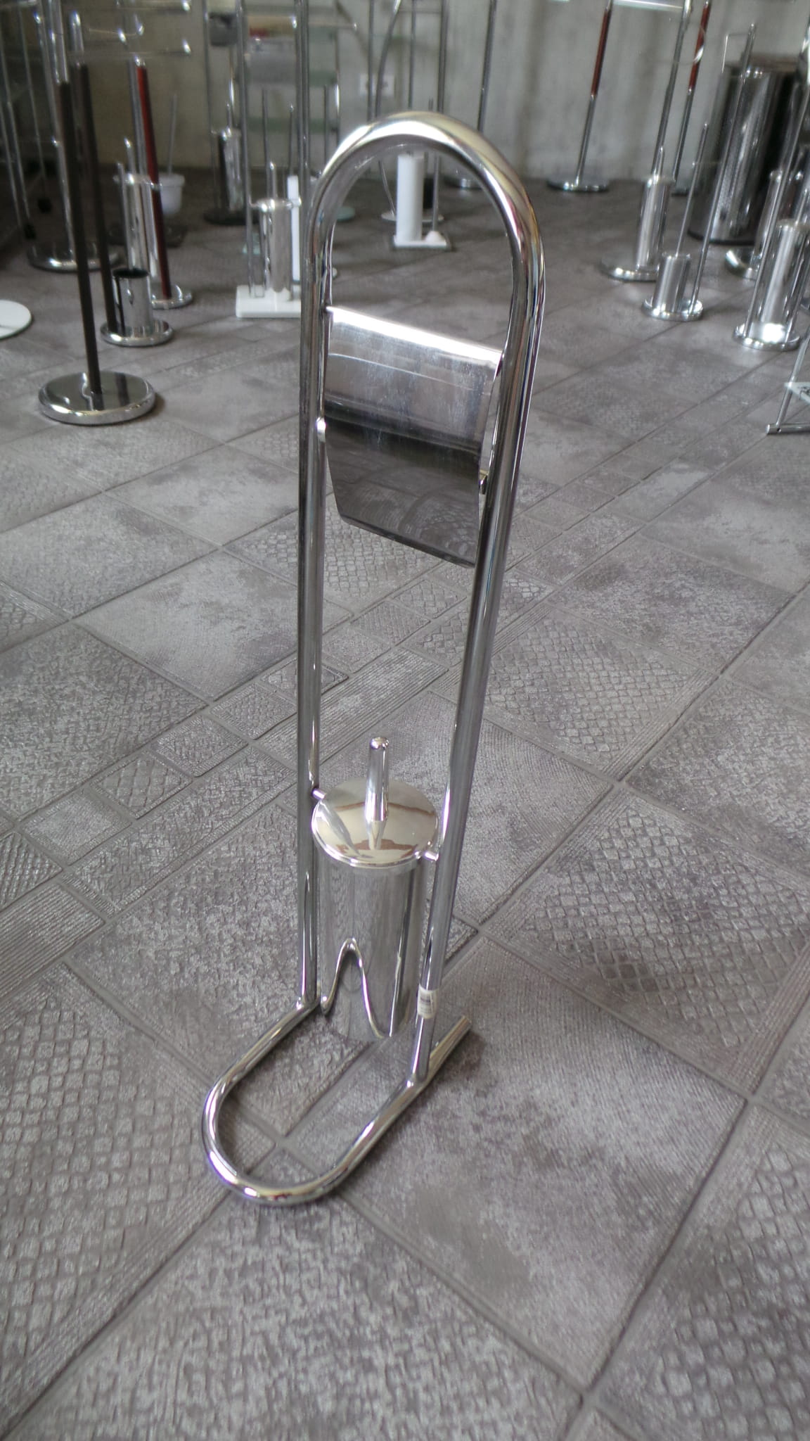 Przedmiotem sprzedaży jest stojak łazienkowy na papier ze szczotką do WC, wykonany ze stali. Prostota dwóch rurek plus szczotki do WC w tubie oraz uchwyt na papier to podstawa każdej łazienki i WC. Wymiary: podstawa 20cm x wysokość 73cm.