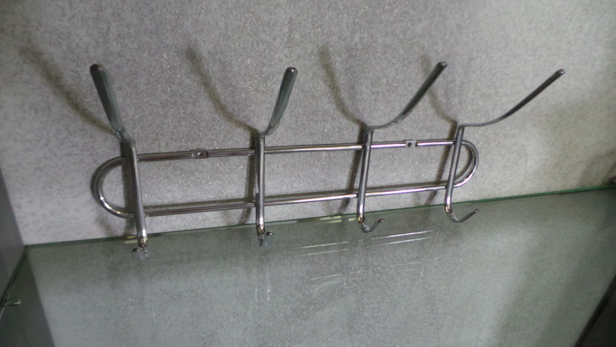 Przedmiotem sprzedaży jest wieszak do łazienki, kuchni lub przedpokoju, przeznaczony do powieszenia na ścianie za pomocą dwóch kołeczków rozporowych (znane nam są przypadki, gdzie klienci mocowali wieszak za pomocą taśmy typu tesa, 3M lub na preparacie PATTEX FIX bez wiercenia w kafelkach lub ścianie). Wykonany z bardzo dobrej jakości stali nierdzewnej. Posiada dwa podwójne haczyki do powieszenia ręczników, ścierek lub odzieży, razem cztery wieszaki. Szerokość wieszaka 18cm.